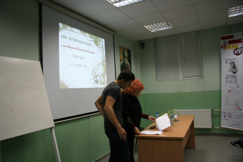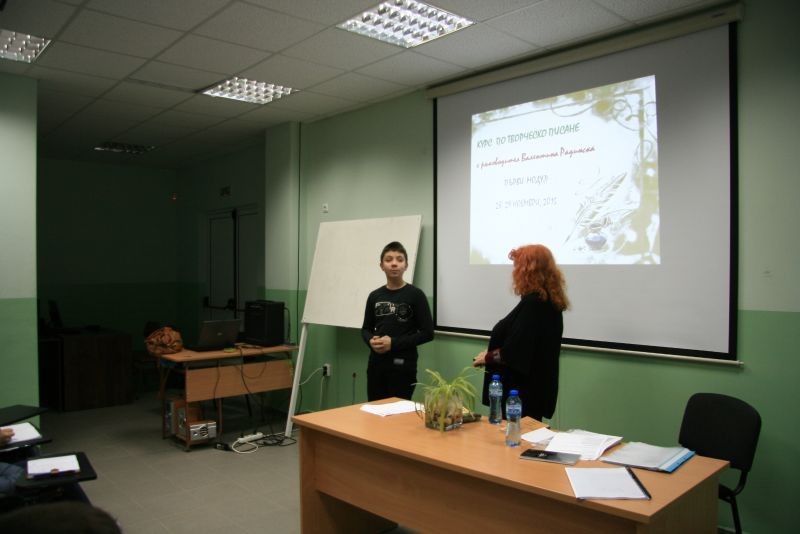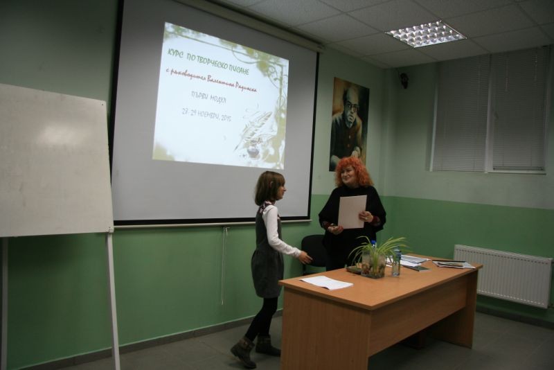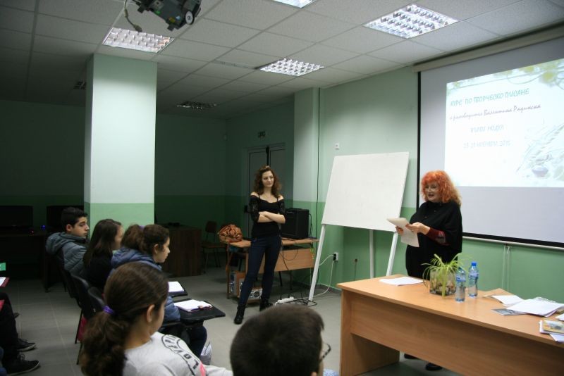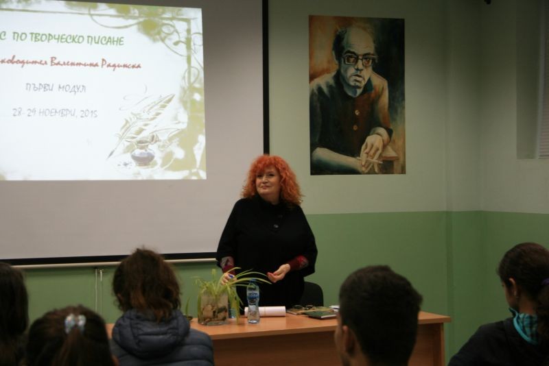 На 28 и 29.11.2015 год. в Хуманитарна гимназия се проведе курс по творческо писане, воден от поетесата Валентина Радинска. При голям брой участници както от нашето, така и от други училища в града протекоха трите модула на занятията.