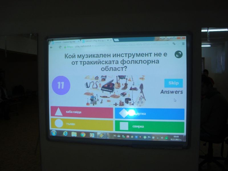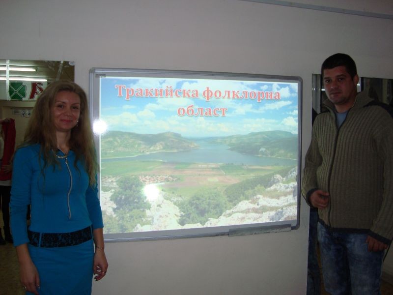 Темата, която беше представена с мултимедийна презентация бе: „Тракийска фолклорна област”. След това чрез платформата „Kahoot” за създаване на онлайн-тестове, учениците провериха своите знания, като се включиха със своите таблети, чрез които отговаряха на теста-игра. Учителят получаваше веднага отговорите - брой верни и неверни, както и времето, за което е даден верен отговор. Веднага след теста всички имаха възможност да видят скалата на резултатите. По време на открития урок учениците от V „а” клас представиха характерни комбинации и хора от Тракийската фолклорна област.