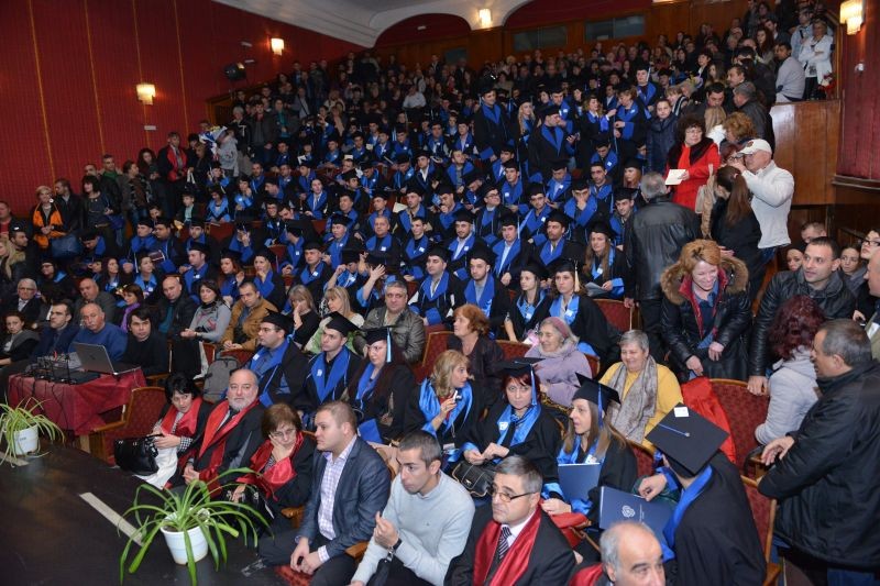 Тържеството се състоя днес в залата на читалище „Зора” в присъствието на много гости, студенти, техни родители, преподаватели и приятели.