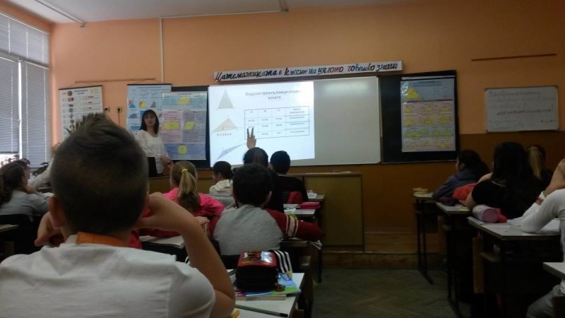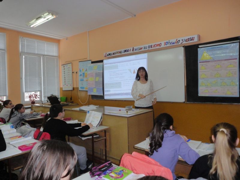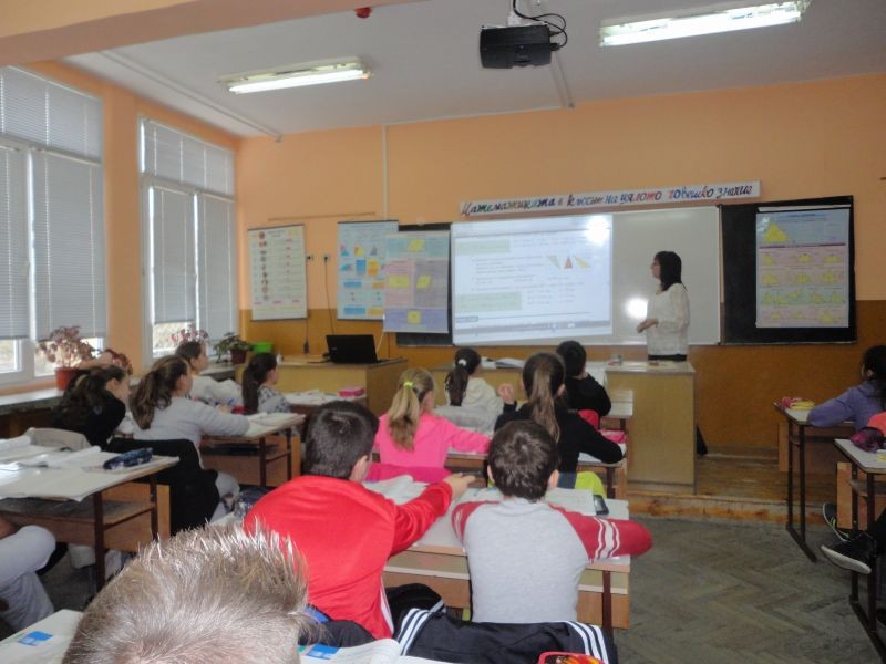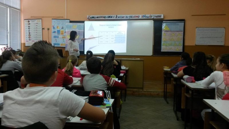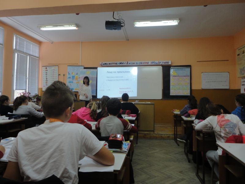 На 10. 12. 2015 г. се проведе открит електронен урок по математика. Г-жа Елена Льолева и учениците от V „а” клас работиха по темата: „Лице на триъгълник”.