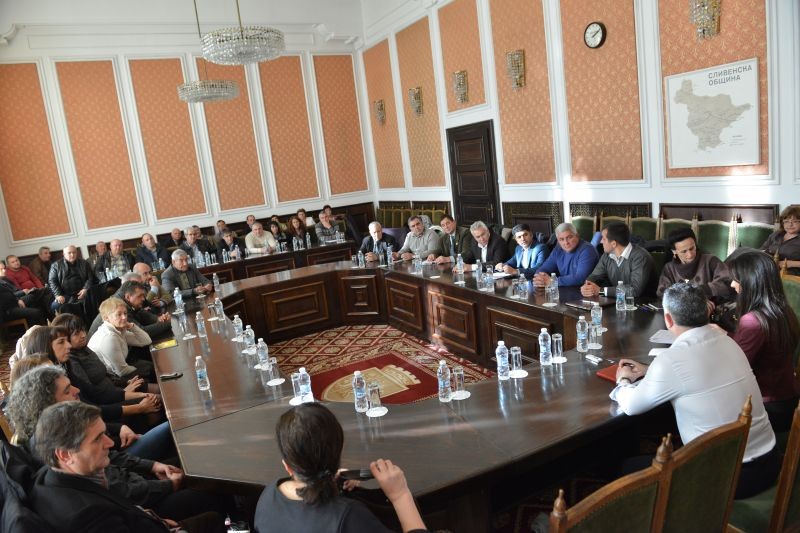Кметът Стефан Радев проведе днес първата си работна среща с кметовете на населените места в общината. На събирането присъстваха още Валя Радева – секретар на община Сливен, Румен Иванов - зам.- кмет по „Икономическа политика и финанси” и Снежана Кънева – ръководител на отдел „Сигурност, управление при кризи и ОМП”.