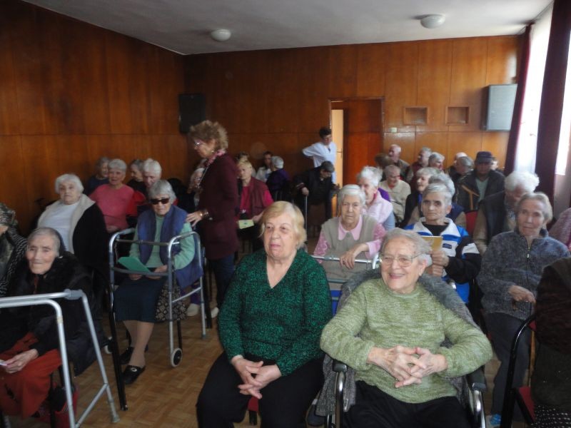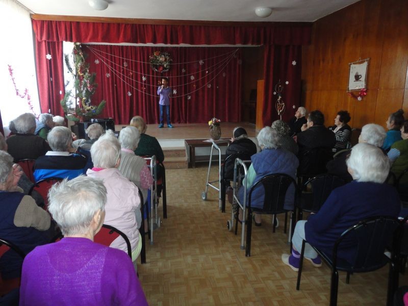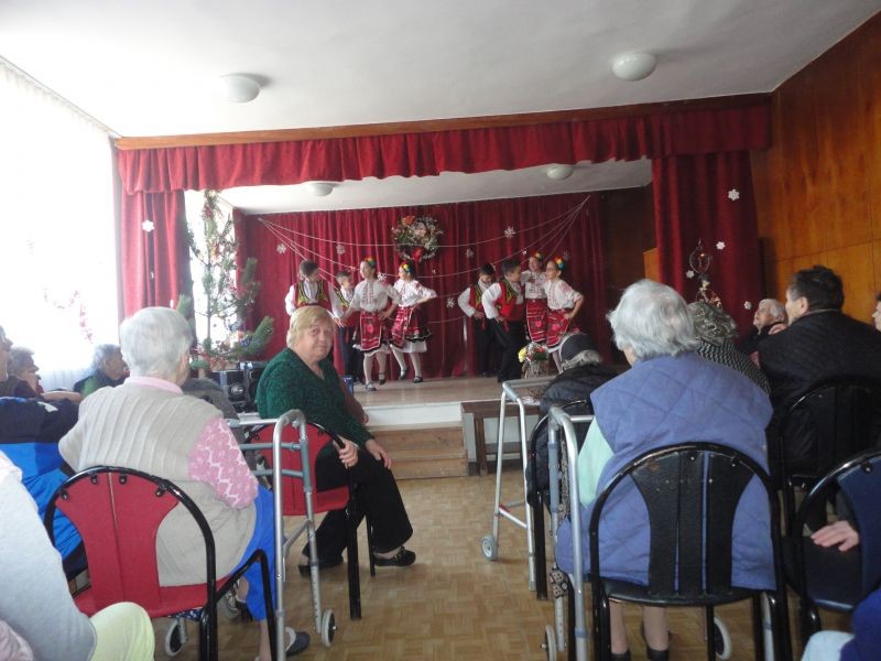 В навечерието на Коледните и новогодишните празници на 22.12.2015 г. танцов състав „Детелина” при ОУ ”Елисавета Багряна” посетиха Дома за възрастни хора – Сливен и ги поздравиха с концертна програма. Специален поздрав към възрастните хора отправи Алекс Николаев Колев от 3 „б” клас с песен „За България” и песента „Душа”. В знак на уважение, децата от училището бяха подготвили ръчно изработени картички за всеки възрастен от дома. Домакините се наслаждаваха на програмата с голяма умиление.