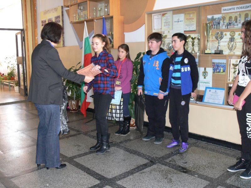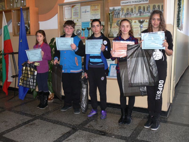 Отличени бяха още: Йоанна Стефанова от 5 клас, Ахмед Идириз от 7 а клас, Димитър Кръстев от 7 клас и Ирен Иванова от 7 а клас.