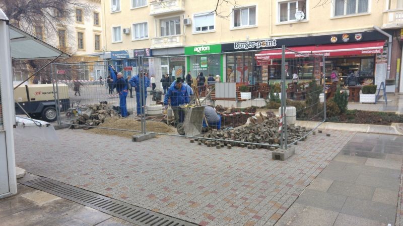 Започна ремонт на увредена настилка по пешеходната зона до Стария бряст