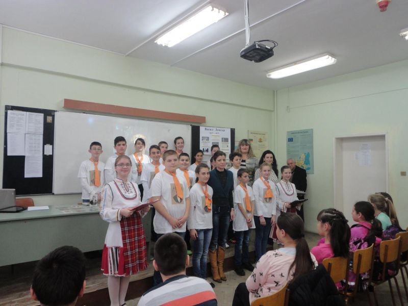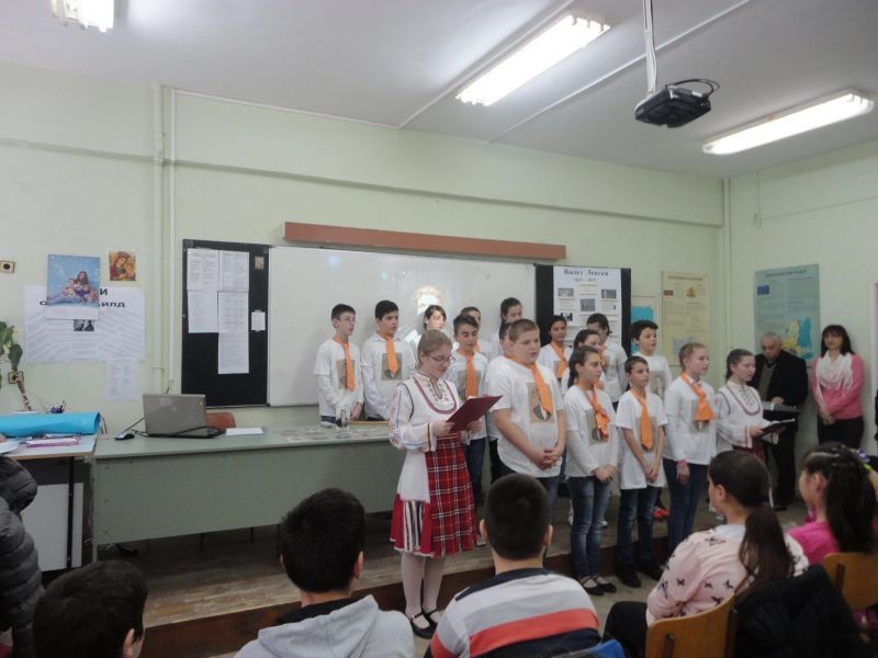По случай 143 години от обесването на Васил Левски, децата от клуб ”Млади Възрожденци” изготвиха програма, която представиха пред свои съученици, родители и учители. Тържеството започна с презентация за живота и делото на Васил Левски, след нея учениците представиха любопитна информация, свързана с различните прозвища на Апостола, последва викторина и рецитал. Младите възрожденци използваха възможността и представиха проекта си за знаме на клуба със съдействието на г-н Румен Петров – учител по изобразително изкуство. Програмата завърши с една от любимите, но малко известна песни на Васил Левски – „Все за тебе мисля, мамо” под съпровода на г-н Огнян Чобанов. Скъп гост на тържеството бе г-жа Кристиана Станкова – старши експерт по обществени науки и гражданско образование.