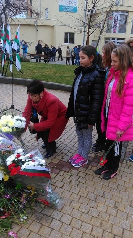 Учениците взеха участие и в общоградска възпоменателна церемония и поднасяне на цветя пред паметника на Апостола на свободата от 12.00 ч. на площад "Васил Левски".