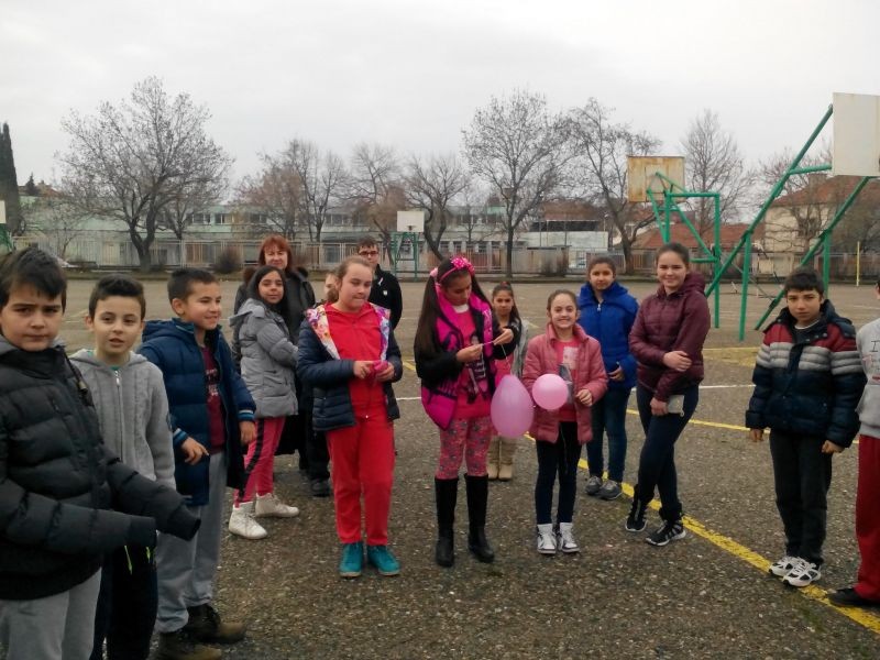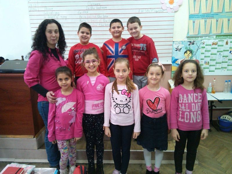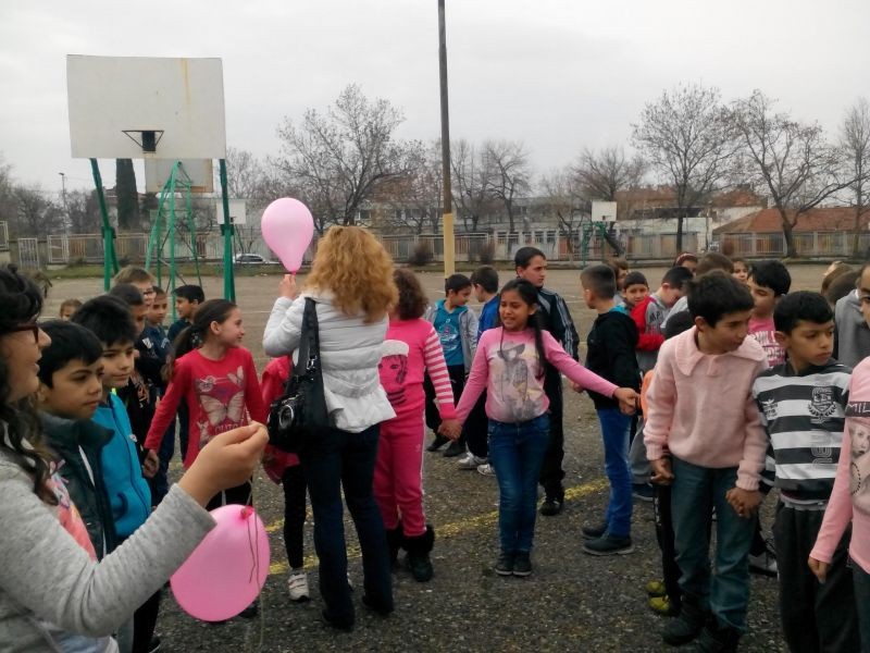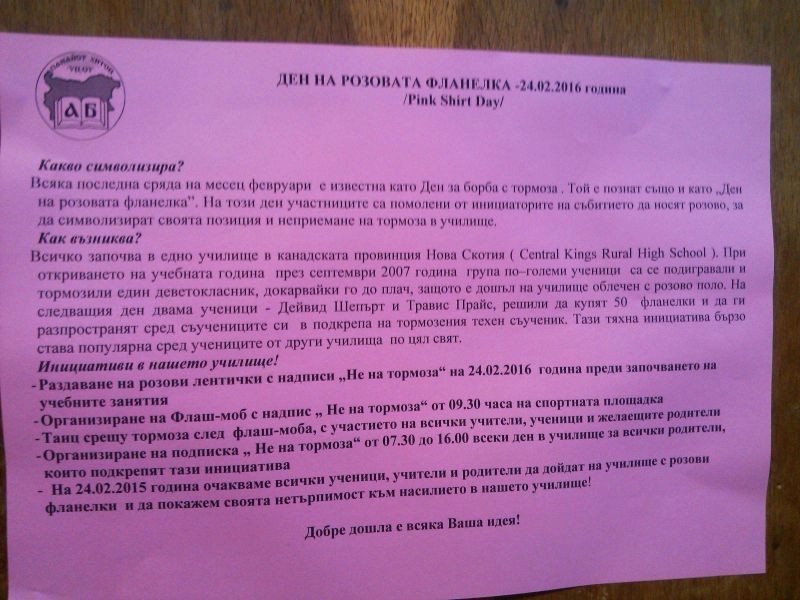 В голямото междучасие всички ученици, някои от които облечени в розови фланелки, участваха във флаш-моб, изписаха с телата си "Не на тормоза" в училищния двор, а най-малките пуснаха розови балони.
