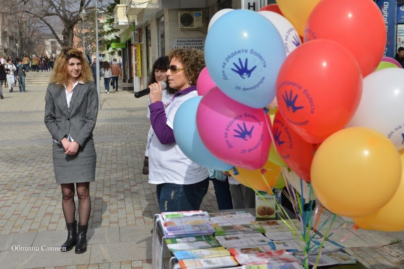 Точно в 13 часа пред Стария бряст, в знак на солидарност към милионите болни по света, сливенци пуснаха разноцветни балони, символизиращи многобройните видове редки болести, което се осъществи по едно и също време в цяла Европа. В инициативата се включи зам.-кметът по „Хуманитарни дейности” Пепа Чиликова, която пожела на страдащите от редки заболявания да имат силна воля, за да бъдат пример на всички с техния оптимизъм и вътрешна сила.