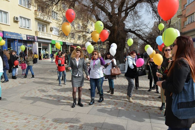 Точно в 13 часа пред Стария бряст, в знак на солидарност към милионите болни по света, сливенци пуснаха разноцветни балони, символизиращи многобройните видове редки болести, което се осъществи по едно и също време в цяла Европа. В инициативата се включи зам.-кметът по „Хуманитарни дейности” Пепа Чиликова, която пожела на страдащите от редки заболявания да имат силна воля, за да бъдат пример на всички с техния оптимизъм и вътрешна сила.