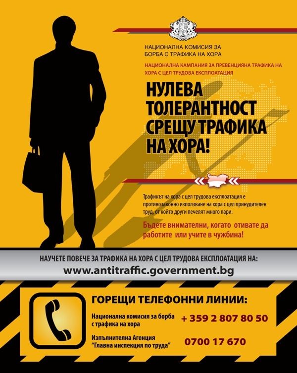 Местната комисия за борба с трафика на хора (МКБТХ), гр.Сливен, за поредна година стартира информационна кампания за превенцията на трафика на хора с цел трудова експлоатация под мотото „Нулева толерантност срещу трафика на хора 2016”. Партньори в инициативата са дирекция „Бюро по труда” – гр.Сливен и Европейски информационен център Europe Direct – гр.Сливен.