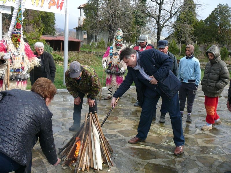 Станчо Станчев, кмет на с. Драгоданово поздрави гостите и участниците в Маскарадните игри. Заедно със заместник-кмета и областния управител запалиха традиционния огън, който се прави на Сирни Заговезни и прескача от хората за здраве и благополучие.