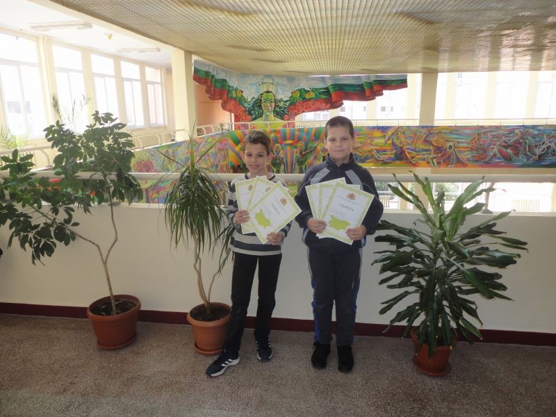 Стоян Стефанов и Ивайло Петров от III „а” клас са победители в състезанието по лека атлетика, което се проведе в град Сливен на 10.03.2016г.