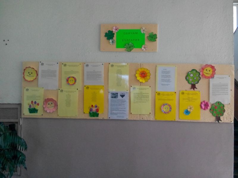 В рамките на седмицата с мероприятия, посветени на празника на училището на 16.03.2016 година се състоя награждаването на отличилите се ученици в конкурсите за рисунка и литературни творби на тема:"Аз обичам България".