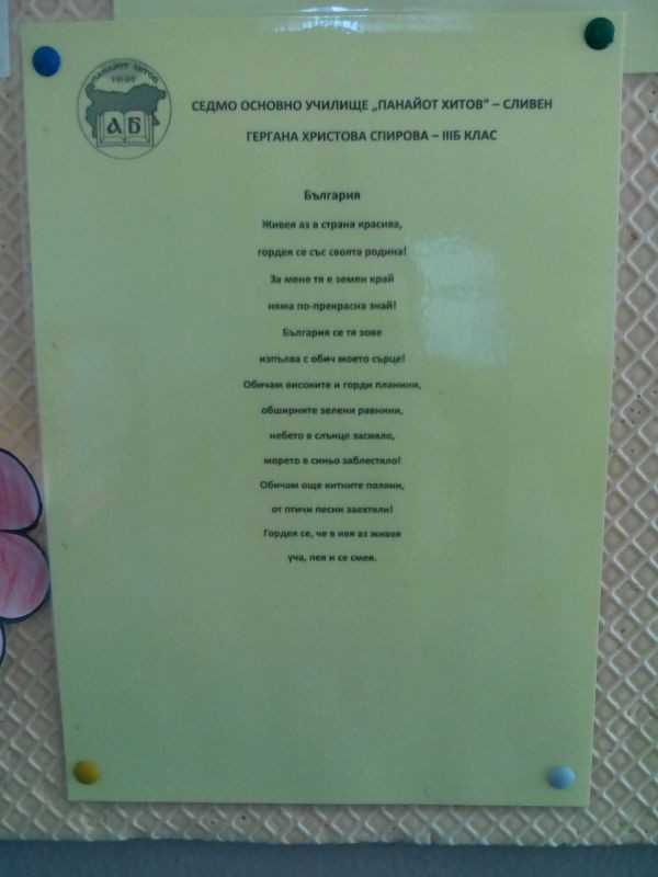 ПОБЕДИТЕЛИ В КОНКУРСИТЕ ЗА РИСУНКА И ЛИТЕРАТУРНИ ТВОРБИ НА СЕДМО ОСНОВНО УЧИЛИЩЕ"ПАНАЙОТ ХИТОВ"