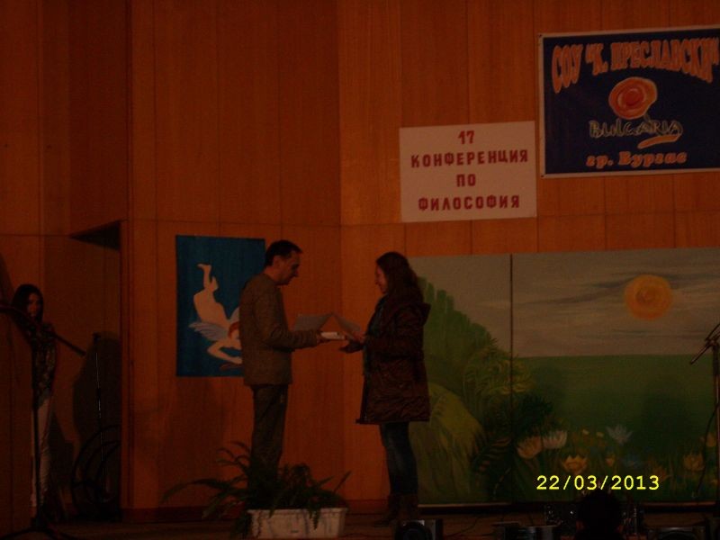 Вече 20 години всяка пролет СОУ „Константин Преславски” в град Бургас е „сборен пункт” на младите, мислещи хора на България. Тази юбилейна година, отново събра ученици от цялата страна за участие в Националната ученическа философска конференция „Човек.Свят”.