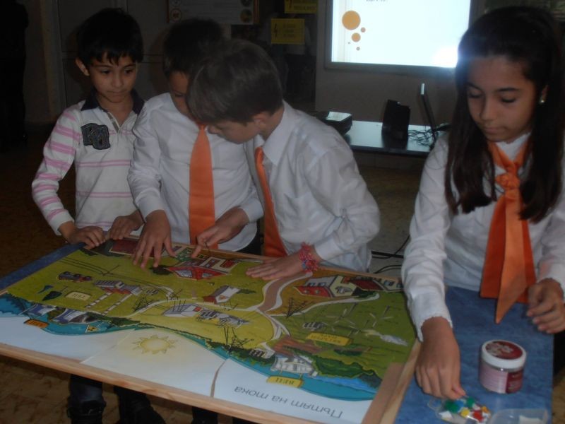 Второкласниците се включиха в състезание за най-бързо подреждане на пъзел „Пътят на тока”. Откриха и разказаха за местата, където се произвежда електрически ток и за това как достига до домовете ни.