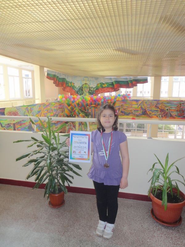 Талантливата математичка бе наградена с грамота и медал от Съюза на математиците в България , секция „Проф. д-р Д. Табаков” – Сливен.