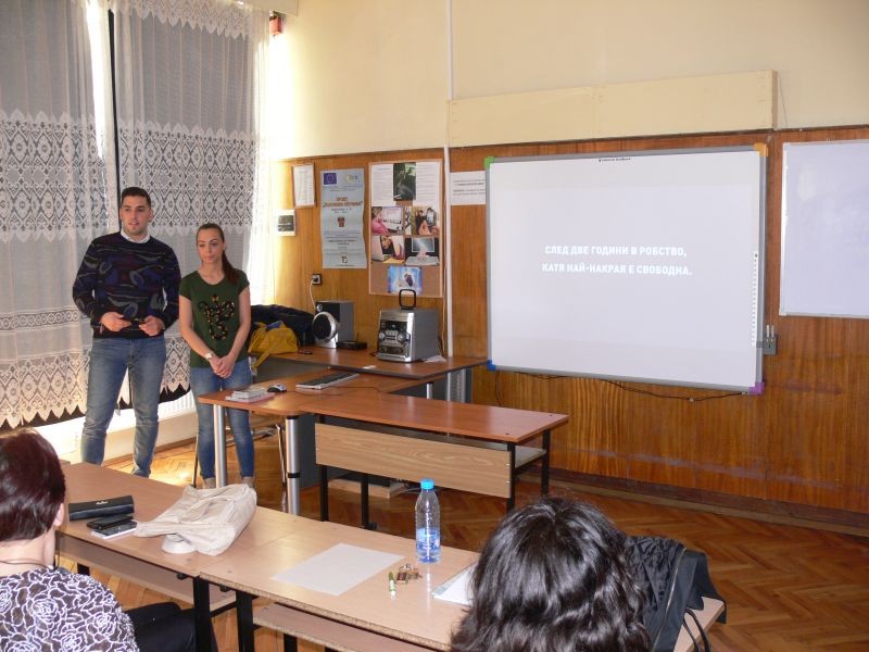 Чрез прожекции на тематични филми учениците бяха запознати с методите на въвличане в експлоатация, рисковите ситуации и начините за предпазване от съвременните форми на робство.