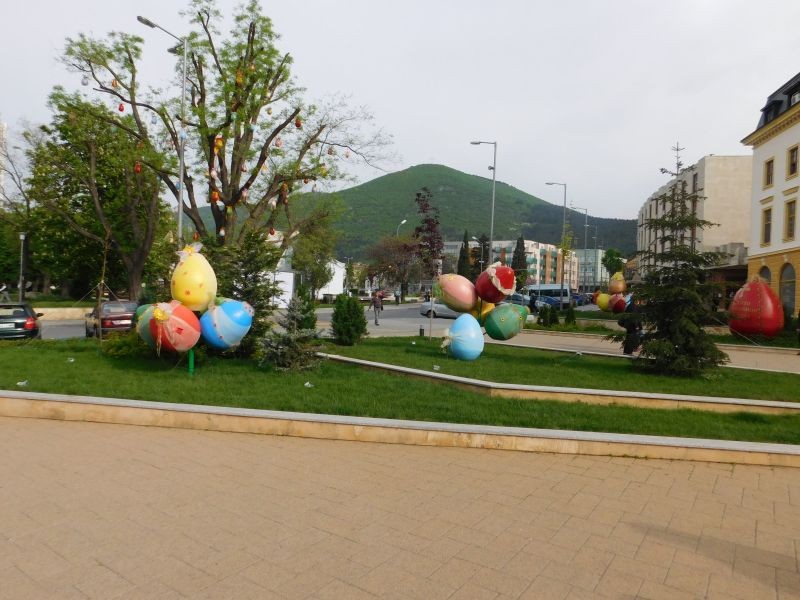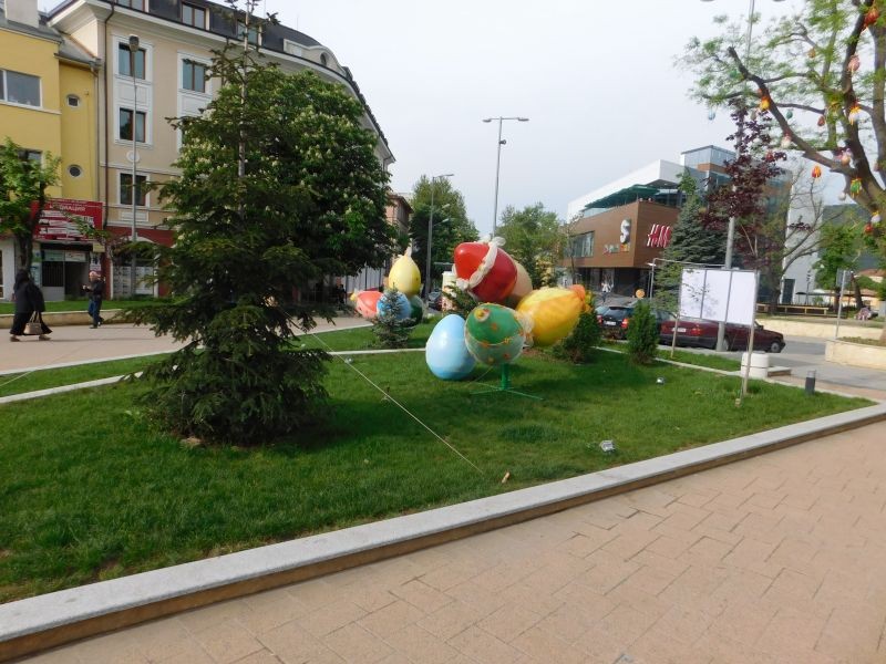 В Сливен започна монтиране на Великденска украса пред сградата на Общината и по главната улица на града. В тревните площи се поставят около 30 броя големи Великденски яйца, а едно от дърветата се украсява с около 60 яйца с по-малки размери, които вечер ще бъдат осветявани от два металхалогенни прожектора. Прожекторите са с малка мощност, но с много голямо светоотдаване.