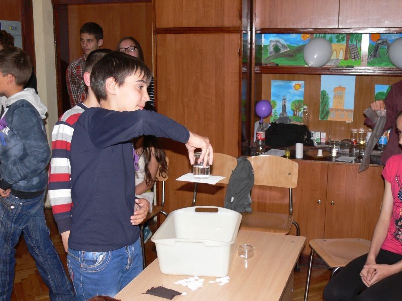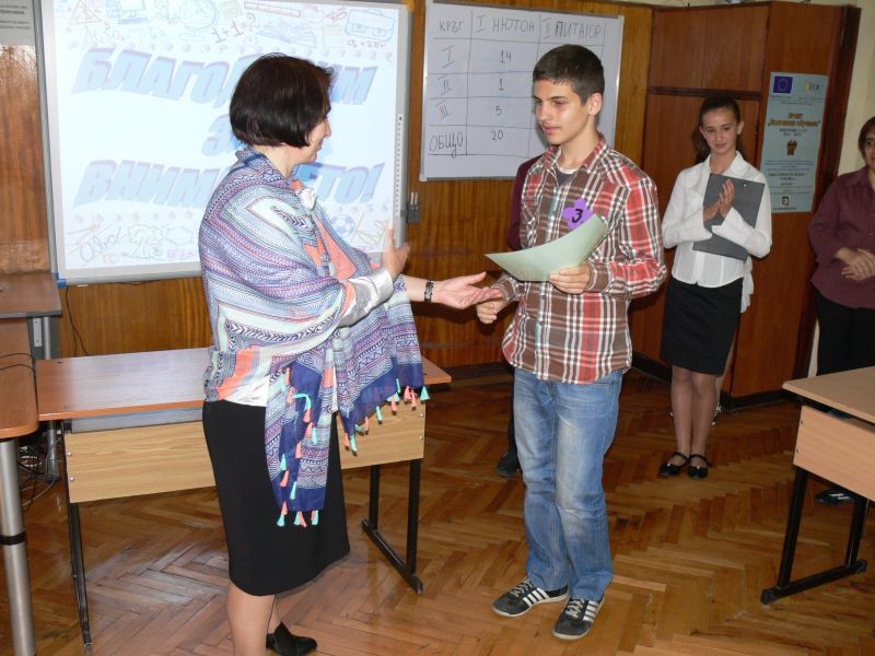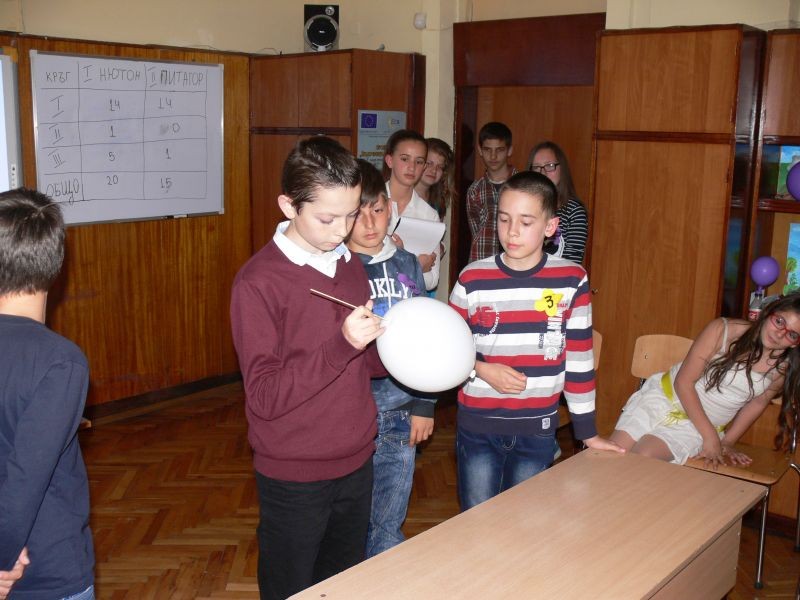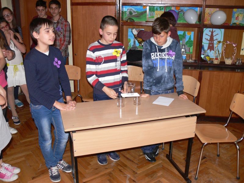 Между кръговете имаше и забавно междучасие, което включваше интересни задачи за публиката, както и серия от експерименти. По забавен начин децата от VІІ клас представиха явлението наелектризиране на телата.