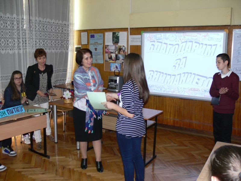 В края на събитието г-жа Диана Кънева - директор на училището, връчи грамоти и награди на участниците.