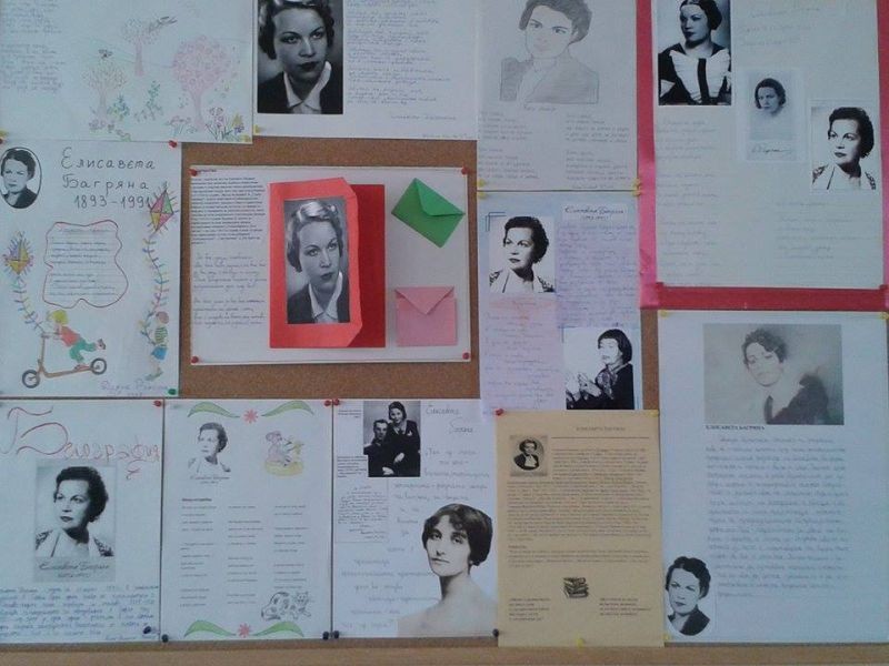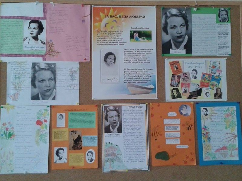 По случай празника на училището учениците от трети клас изготвиха страница за Елисавета Багряна. Поетесата е патрон на училището. Творбите на децата включват стихотворенията "Утро в Сливен", " Обичам те, Родино", както и откъси от други произведения. Учениците добавиха информация от автобиографията на писателката, снимков материал и илюстрации към творбите.