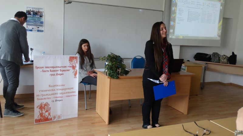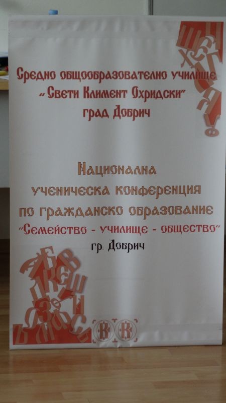 На 22 и 23 април град Добрич бе домакин на първата Национална конференция по гражданско образование „Семейство-училище-общество”. Събитието е организирано от СОУ "Св. Климент Охридски", със съдействието на РИО, Община град Добрич и Висше училище по мениджмънт. Мото на проявата са думи на Никола Станев, автор на първия учебник по гражданско образование от 1894 година: "Гражданското учение ни учи какво трябва да знаем и правим, за да станем добри и полезни граждани. То ни разказва как е наредено нашето отечество, какви са законите, какви са ни правата и задълженията".