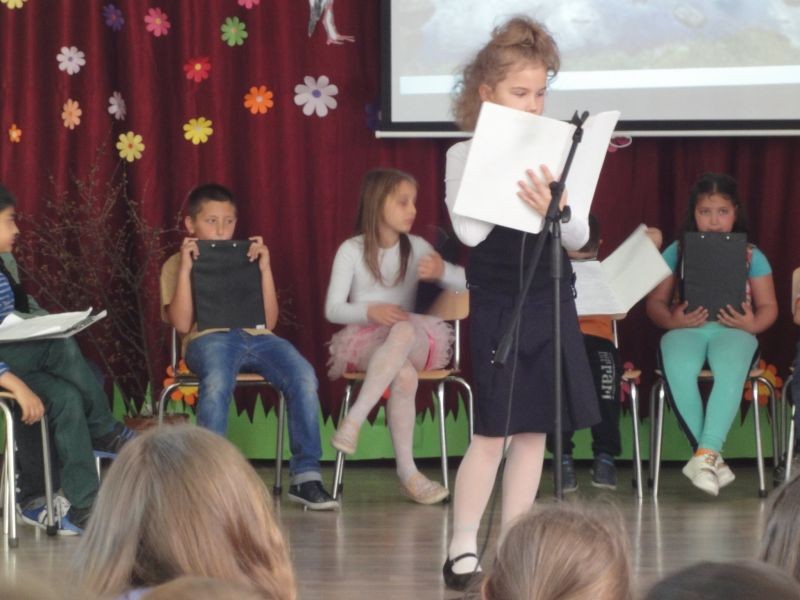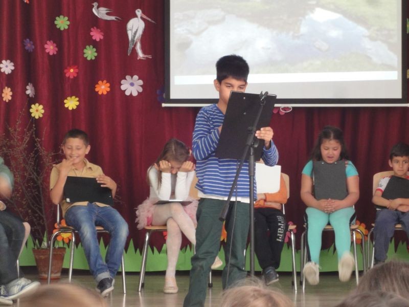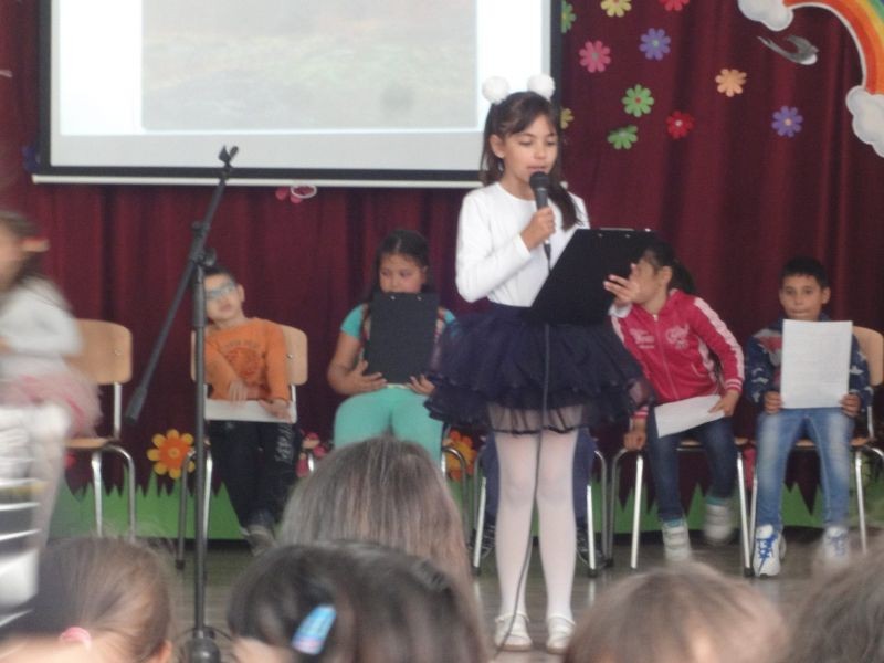 С голям ентусиазъм разкриха пред своите съученици приказната история, в която участват Пъргавото зайче, Красивата сврака, Големият дъб, Шипковият храст, първото кокиче, горските обитатели, прекрасните цветя и добрите деца Марти, Анди и Тея.