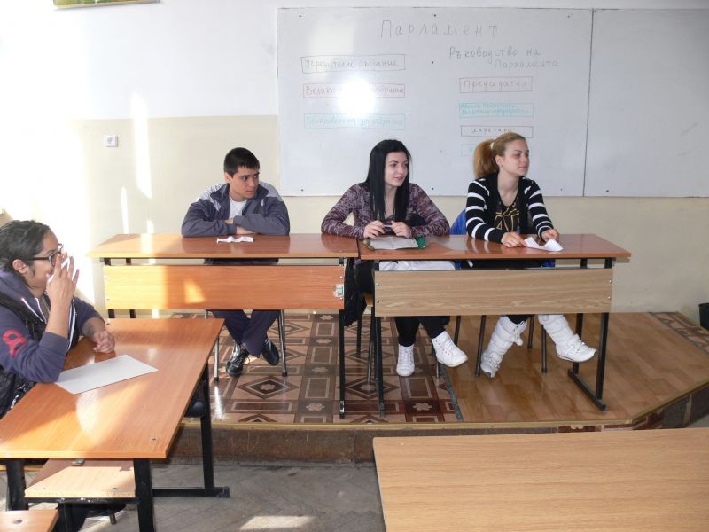 Под ръководството на преподавателя Яна Панайотова учениците пресъздадоха роли на депутати и ръководство на Парламента.