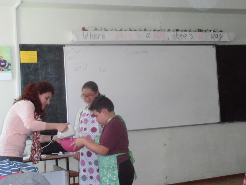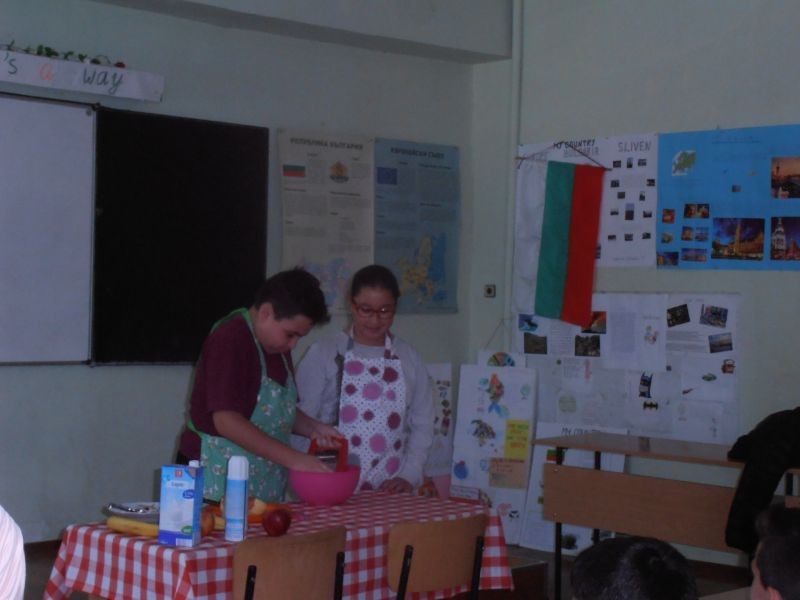 Учениците от пети клас показаха умения в приготвянето на млечен шейк по английска рецепта .