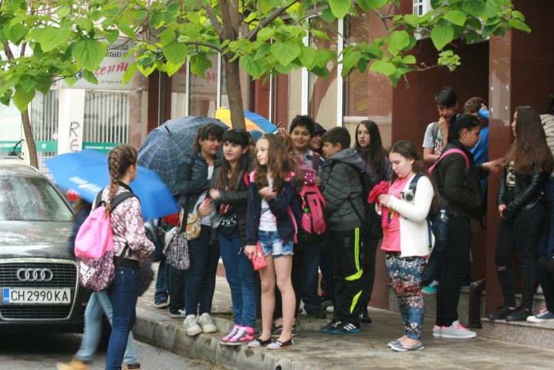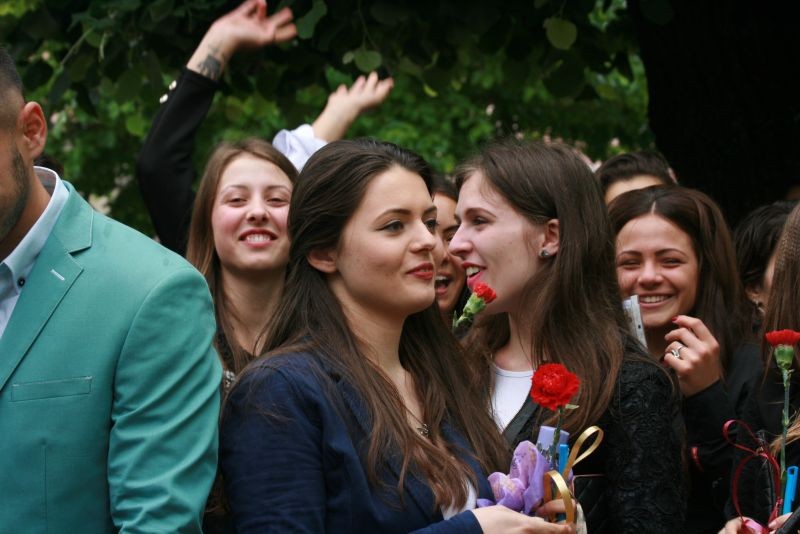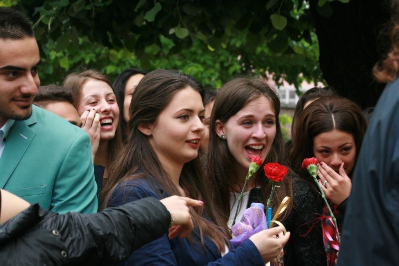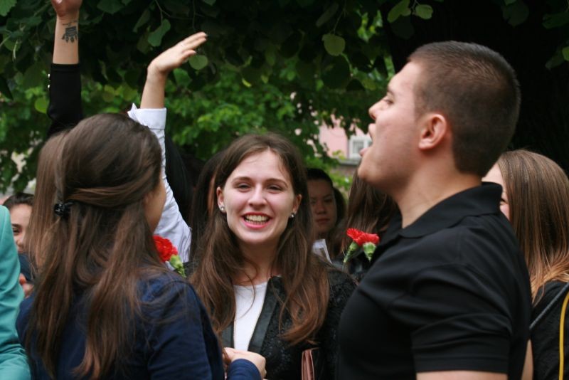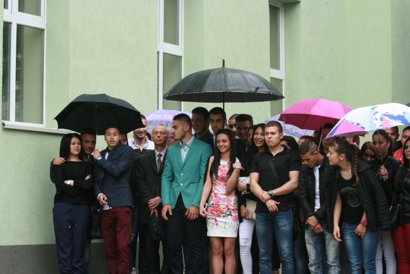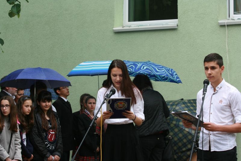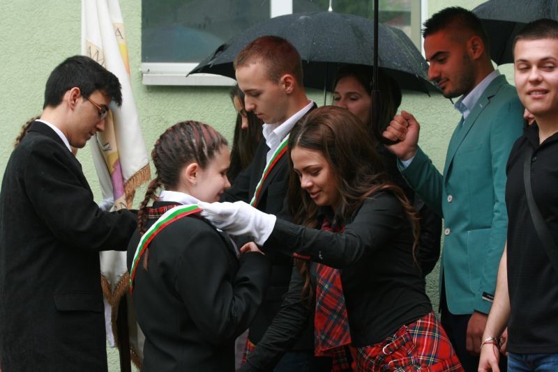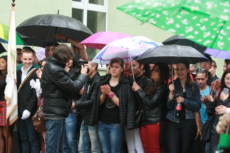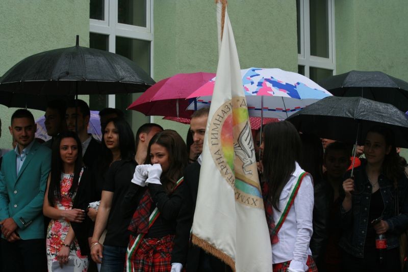 Пролетният дъжд скри сълзите на дванадесетокласниците, когато се сбогуваха със своите учители.