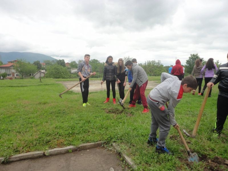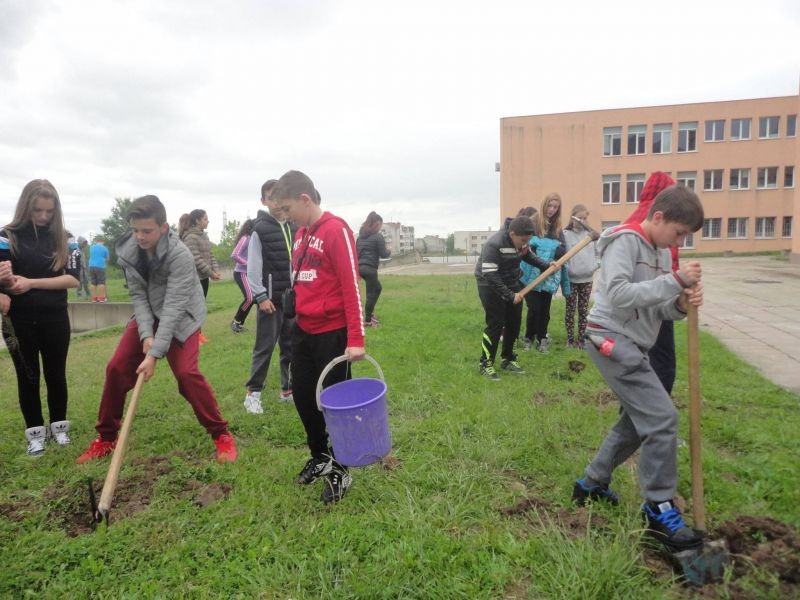 Всички ученици с много вълнение и радост се включиха в благородната инициатива и посадиха фиданките в двора на училището.