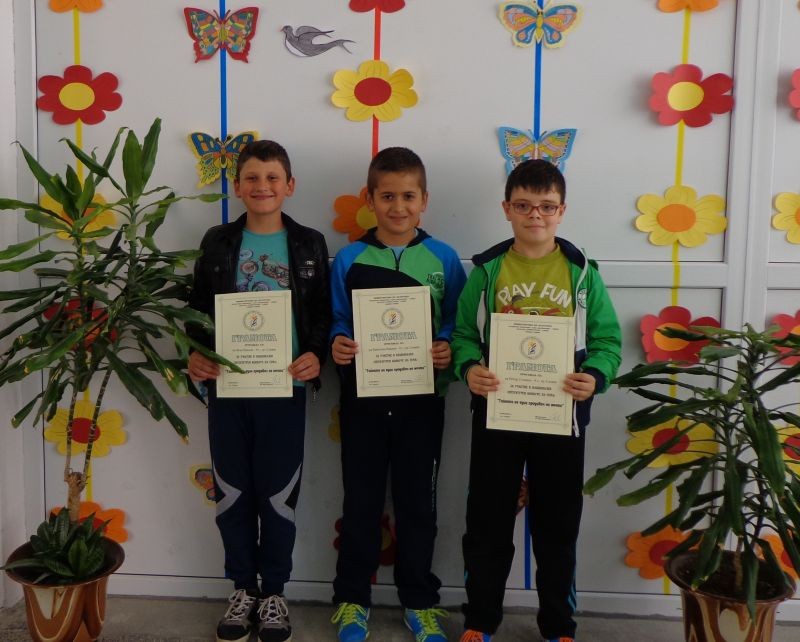 За отличното си представяне, учениците: Кристиян Иванов, Ясен Кикьов и Петър Стоянов от ІІІ "а" клас, получиха грамоти и благодарствено писмо от директора на Регионална библиотека "Сава Доброплодни".