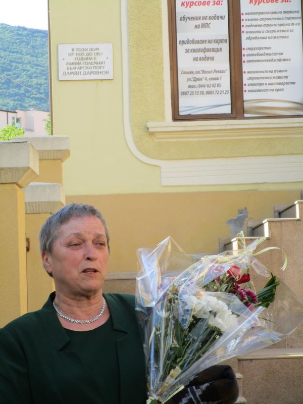 Надежда Захариева, съпруга на поета Дамян Дамянов, патрон на хуманитарната гимназия в Сливен, бе за два дни в града във връзка с отчитането на националния конкурс за поезия „Дамян П. Дамянов“ . Този конкурс е учреден от община Сливен в партньорство с ИК „Жажда“ през 2006 г. Наградата се състои от диплом, плакет и парична премия. Конкурсът се провежда на всеки две години в навечерието на 24 май и в него могат да участват поети от цялата страна, издали стихосбирки през предходната година. Присъжда се и награда за дебют (диплом и парична премия), осигурени от Издателска къща „Жажда“. Във всички досегашни конкурси поетесата Надежда Захариева бе член на журито, а през тази година със заповед на кмета на общината бе определена за негов председател.