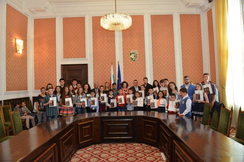 На 24 май кметът на община Сливен Стефан Радев и неговият управленски екип посрещнаха 38 ученици, носители на награди от национални и международни състезания и конкурси. В официалната зала на общината Радев им връчи грамоти за високи постижения през годината и книги на български автори.