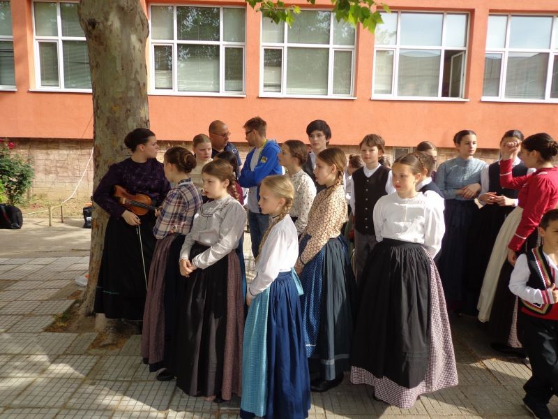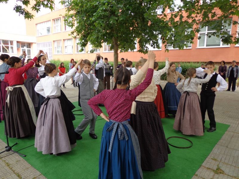 Стихове, песни и танци отрано звучаха в училищния двор.