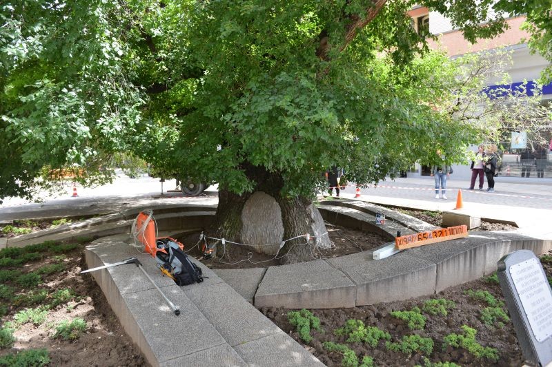 Започна укрепване на Стария бряст в Сливен. Процедурата стартира с проверка жизнеността и механичната структура на дървото от експерта по дърветата от Германия Бодо Зигерт. "Това, което ще направим, е да закрепим клоните един към друг с въжета тип "кобра". Направихме изследвания, за да придобием 3D представа какво се случва в дървото. Използвахме звуков сигнал и метод с пробиване, за да разберем каква е структурата и дебелината му, която може би е от няколко сантиметра", каза специалистът. Той посочи, че ще се наложи съкращаване на короната на Стария бряст, за да се намали тежестта и сподели идеята да се използват колони за придържане на клоните.