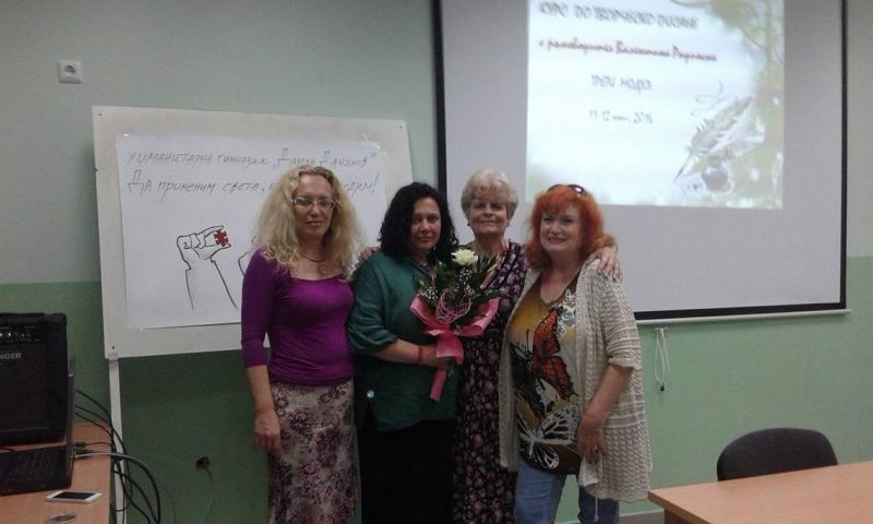 На 11 и 12 юни 2016 г. се проведе заключителният модул на курса по творческо писане с ръководител Валентина Радинска. През учебната година учениците от хуманитарната гимназия имаха три ползотворни срещи със своята съгражданка. На тези срещи младите творци представиха новите си творби, чуха напътствията на Валентина Радинска, редактираха написаното.
