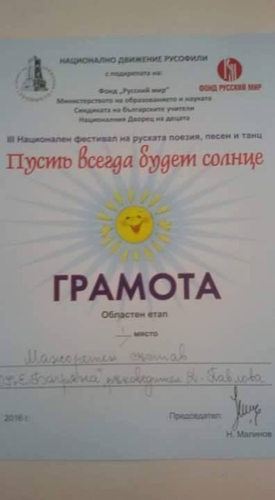 На 18 юни 2016 г. се проведе зоналният кръг на третия Национален фестивал на руската поезия, песен и танц.