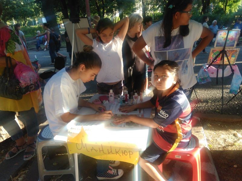 Междувременно на различни места в градската градина бяха разположени работилнички. Посетителите можеха да се включат в бодиарт. Върху лицата на деца бяха рисувани анимационни герои, животни и др., а младежите предпочетоха цветя върху ръцете си и други интересни картинки по техен избор. Малките деца бяха привлечени и от възможността за правене на маникюр. Организаторите бяха предвидили йога на смеха, стрелба с лък под ръководството на екипа на крепост "Туида" и други забавни занимания. Имаше игри с фризби, с топки, демонстрации и игри с доброволци от БЧК - Сливен. Свои информационни щандове подредиха доброволците на "Червен кръст", на програма "Еразъм +", на Европа директно - Сливен, на Сдружение "Жажда за живот", където всеки желаещ можеше да провери своите знания чрез забавна викторина, и др. Посетителите получиха информационни материали и подаръци.