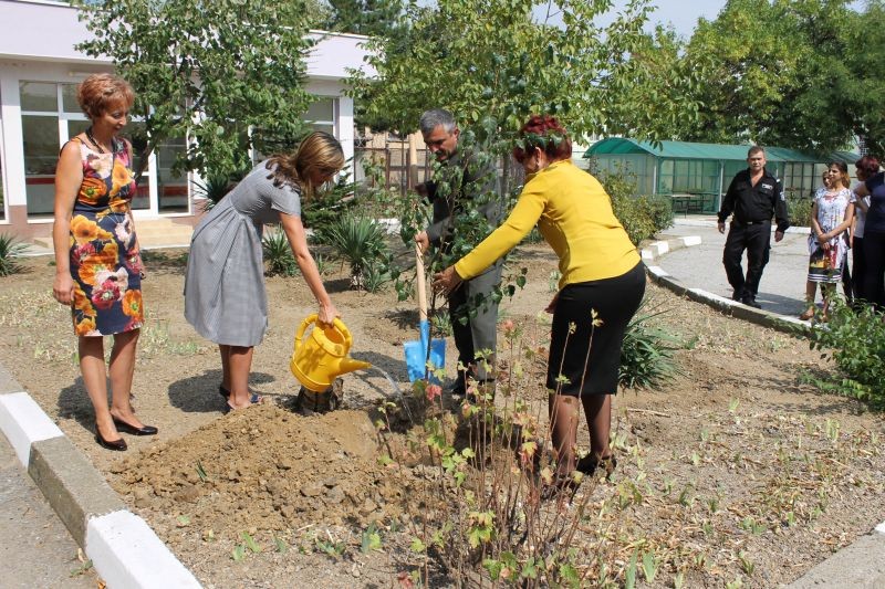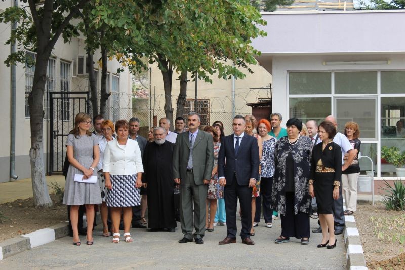 След отслужен водосвет, министър Захариева и директорът на СУ „Аргира Жечкова“ Мариана Райчева посадиха дръвче в двора на затвора.