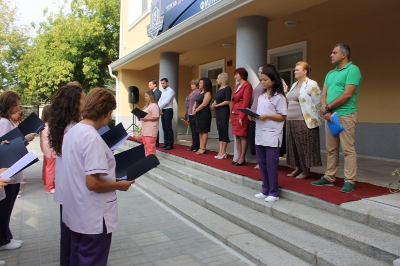 Доц. Иван Димитров – директор на филиала, произнесе слово при откриването на учебната година. Тази година освен обучителен курс, за първи път ще има и стажантски курс. Първокурсниците са 20 студенти, обучаващи се за медицински сестри, и 20, които се обучават за акушерки.
