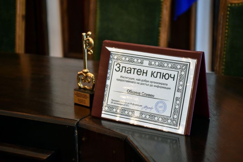 Община Сливен получи наградата ”Златен ключ” на Програма Достъп до информация за „Институция, организирала най-добре предоставянето на информация за граждани”.