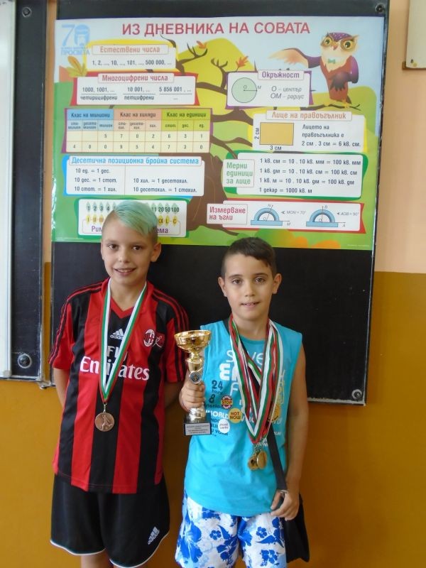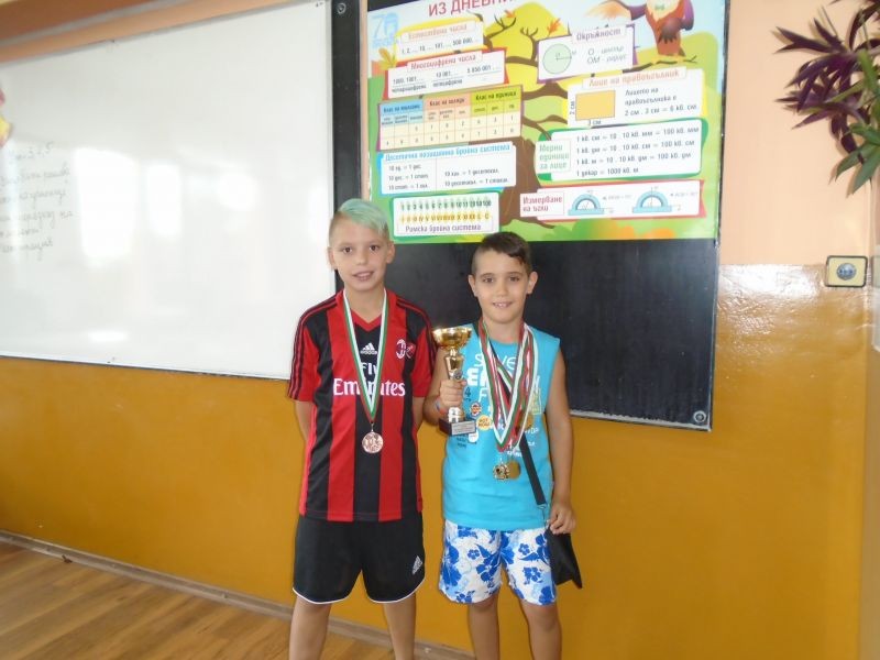 Учениците Димитър Димитров Димитров и Ваньо Николаев Чапаров от 4 „б” клас получиха много спортни награди, грамоти, златен медал и купа в турнирите по баскетбол и футбол.