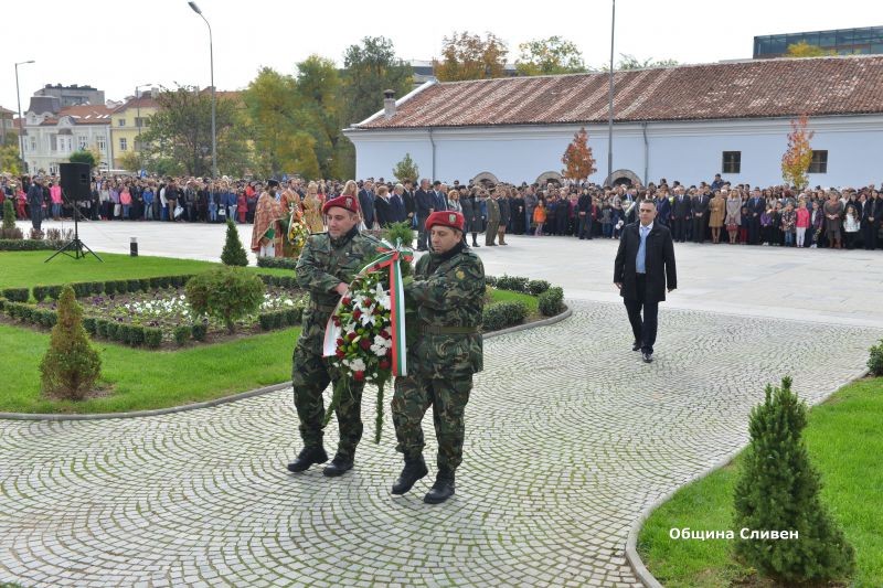 Приветствие по повод 26 октомври поднесе кметът на община Сливен Стефан Радев. „Сливен е град, който в многовековната си история е бил кръстопът на традиции, култури и епохи. Тук винаги се е пазила духовността. С богатото ни културно-историческо минало, с красивата и достъпна природа, Сливен има много потенциал за развитие на различни форми на туризъм. Ние, съвременниците, полагаме големи усилия за подобряване на градската и жизнена среда. Изпълняваме редица социални и културни програми, с една основна цел да подобрим бизнес климата, да създадем условия за повече инвестиции и повече работни места. В крайна сметка увеличаването на доходите е голямата задача на всички”, посочи в словото си кметът.