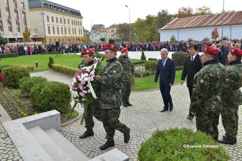 С военни почести и ритуал по издигане на националното знаме на Република България, знамето на Сливен и знамето на Европейската общност беше честван празникът на града – Димитровден.