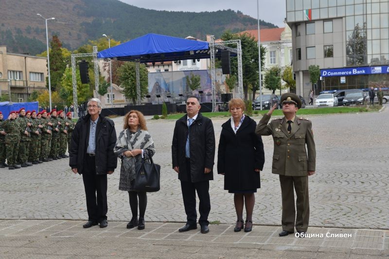 С военни почести и ритуал по издигане на националното знаме на Република България, знамето на Сливен и знамето на Европейската общност беше честван празникът на града – Димитровден.