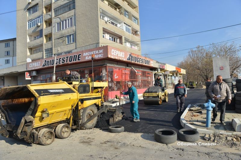 Община Сливен асфалтира около 300 кв.метра - улица и паркинг на кръстовището на ул. „Пушкин” и бул. „Бургаско шосе”. Това се прави, за да се осигури достъп на автомобилите, които зареждат магазините в близост, посочи заместник-кметът по строителството Стефан Кондузов.