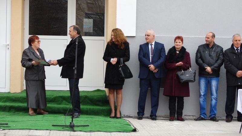 Кметът Грозев връчи на Мария Колева - председател на Сдружението на собствениците в многоетажната жилищна сграда, почетна грамота за първи саниран блок „Дом за пример”. Специален поздрав към гражданите и гостите отправиха Дария Господинова от Детска градина „Тракийче” и танцьорите на танцова школа „All steps”.