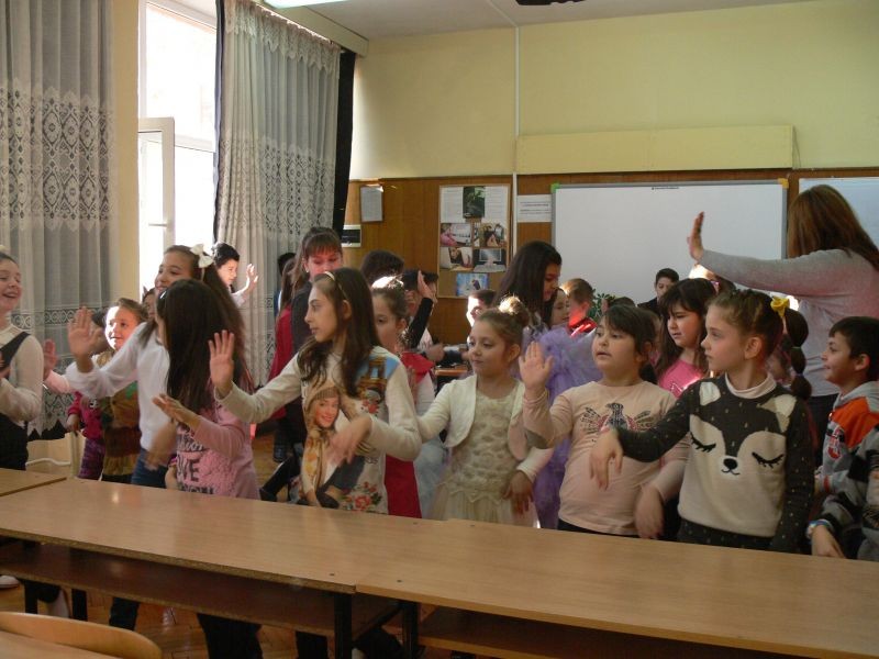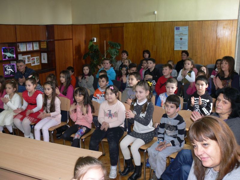 С много настроение и артистичност учениците от четвърти клас поздравиха най-малките възпитаници на СУ „Йордан Йовков“. Приказна феерия от феи и коледари, танци и песни пренесе децата в чудния и прекрасен свят на приказките.